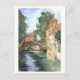 This postcard is a reproduction of the painting "On the Canal, Bruges" by Cass Gilbert, in the collection of the Smithsonian American Art Museum.