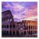 Colosseum (Coliseum) in Rome at sunset against purple cloudy sky, Italy. Roman oval amphitheatre in twilight.