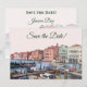 This elegant Italian-themed save-the-date card features a painting of the Grand Canal, from Venice, Italy. Please change the texts as needed. To make additional edits please click 'Edit using the Design Tool' then select a colour for each element on the back layer. For matching RSVP cards, invitations and other stationery please check the entire "Italian Themed - Venetian Wedding" collection.