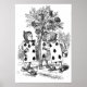 This classic image of Alice in Wonderland's errant Cards 5, 7 and 2 painting the Red Queen's white roses red is beautifully reproduced on a wide range of t-shirts and gifts. “Why the fact is, you see, Miss, this here ought to have been a red rose tree, and we put a white one in by mistake...”
