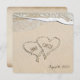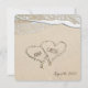 pair of hearts in beach sand with frothy surf for wedding invite.