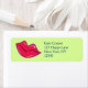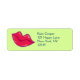 A pair of shining red lips with a a little sparkle and a purple and yellow outline. Subtle white highlights give it a shiny look. Pale green background.