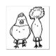 Stamp featuring a fun illustration of two hens, a plymouth rock and a polish crested.