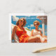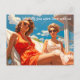 Oil painting of two beautiful young ladies in sun dresses relaxing out on a sun deck during spring break in Miami at a resort under a blue sky.