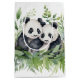 Cute watercolor panda bears in green bamboo leaves on a white background.