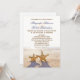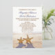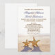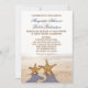 Romantic wedding invitation with couple of starfish in the beach. Beautiful light bright photographic composition for tropical weddings in the beach in island.