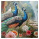 Pair of Teal Blue Peacocks Elegant Ceramic Tile