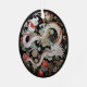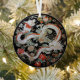 This hanging ornament features a pair of white Asian style dragons surrounded by flowers on a black background. Use it as a decoration, or as a souvenir or memento of a special occasion.