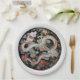 Paper plate featuring a pair of white Asian style dragons frolicking among flowers on a black background. Perfect for Chinese New Year, especially in the Year of the Dragon!