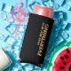 The words PAIRS WELL WITH EVERYTHING in faux gold foil on a black background (or any colour you choose) on the front and your name on the back of this seltzer can cooler. Create for yourself, birthday, bachelorette party or a gift for any occasion.