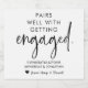 Modern typography engagement bottle labels. Design features typography script ''pairs well with getting engaged'', congratulations and couple name. Personalise further with your name. Perfect for engagement party gift.