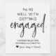 Modern typography engagement bottle labels. Design features typography script ''pairs well with getting engaged'', congratulations and couple name. Personalise further with your name. Perfect for engagement party gift.