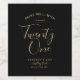 Minimalist "Pairs well with turning twenty one" wine bottle label in simple black and gold with modern, chic and elegant handwriting typography style. All text is customisable. Personalise with age, name and year of birth. Perfect for 21st birthday gift or party favour.