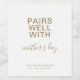 Minimalist "Pairs Well With Mother's Day" wine bottle label in simple white and gold colour with modern and elegant handwriting typography style. Customise with occasion, year/short message and sender/gifter's name. Change the background colour and/or text colour to suit your preference. Perfect for Mother's Day.