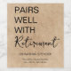 Celebrate retirement in style with this "Pairs Well with Retirement" wine label! A fun and thoughtful addition to any bottle, this custom label makes a perfect gift for coworkers, friends, or family members embarking on their next adventure. Simply peel and stick to create a unique and memorable retirement present.