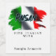 Paisan Fine Italian Wine Label: Personalise it with your family's name! This label showcases an energetic 'Paisan' brushstroke font in black, superimposed over a stylish Italian flag illustration.