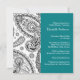 Start off your event off right with our Trendy & Modern Bridal shower invitation featuring a black & white paisley print set on a Turquoise square background. Just customise our invitation with your wedding information and you're all set to go. Available in our shop www.celebrateitinvites.com in other colour themes