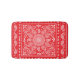 This rug is just as pictured! Vibrant Red and very soft material, nice to step in out of the tub! Matches my set of accessories and shower curtain! A must have to add some whimsy to your bathroom! Very nice, vibrant and clear print! Beautiful!