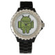 This Android robot is one of a set of special hand-drawn “doodles” I created to be used as a decorative skin or stylish and fashionable outfit for the normally-bare bot. This cute bright green robot character’s name is Paisley. Her familiar pudgy robotic shape is filled with shaded stylised decorative lines, swirls, checks, dots, stripes, and other repeated elements and patterns. Watch for more designs with other Doodles for Android friends coming soon or feel free to contact me for special requests (colours/pattern/style). Android is a trademark of Google Inc. The Android robot is reproduced or modified from work created and shared by Google and used according to terms described in the Creative Commons 3.0 Attribution License.