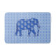 Mixed media digital graphic of an elephant against an arabesque tiled background - cobalt blue with a white, lacy, paisley pattern bath mat