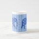 Mixed pattern digital graphic of a richly embellished elephant against an arabesque tiled background - cobalt blue with a white, lacy, paisley pattern