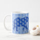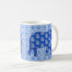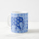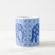 Mixed pattern digital graphic of a richly embellished elephant against an arabesque tiled background - cobalt blue with a white, lacy, paisley pattern