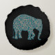 A cool Round Pillow or Cushion to customise, with an Elephant silhouette, filled with a Dark Blue and Burgundy Paisley pattern on a Black Background that you can change if you wish. Part of the Posh & Painterly 'Heffalumps' collection, this design can be adjusted to fit any Pillow or Cushion.