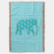 Mixed media digital graphic of an elephant against an arabesque tiled background - turquoise / peacock blue with a white, lacy, paisley pattern and a turquoise and aqua background