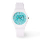 Mixed pattern digital graphic of a richly embellished elephant against an arabesque tiled background - turquoise / peacock blue with a white, lacy, paisley pattern and a turquoise and aqua background