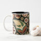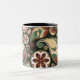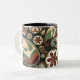This mug features a somewhat retro paisley & floral design in deep autumn colours. Shown on a mug with black inside, but can be changed to other colours and styles.