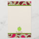 Stationery featuring a paisley border over top and bottom with green trim. Personalise with your name at bottom under illustration of green apple.