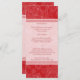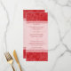 Paisley swirls and flowers in bright red makes a gorgeous pattern for this wedding menu card. Customised text prints against a light panel accented by borders that echo the background pattern. A lovely addition to any wedding. Use it as a menu or any printed piece you might need for your wedding, shower or engagment party. Customise it with your own menu or other information on the front and add your name(s) and event date or additional menu information on the back against the same pattern. Available in alternate colours with matching products.