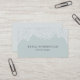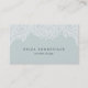 Chic business cards feature a pale icy aqua background with a canopy of delicate paisley lace at the top in tone on tone pastel shades, framing your name and profession or title. Add your full contact details to the reverse side in midnight blue lettering. A lovely choice for any occupation; sample shown for interior design professions.