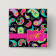 You will love this bold and dramatic personalised name badge pin to wear at your events featuring a whimsy paisley design and personalised with your monogram, initials or name. The bold colours of this trendy paisley design pop on a black background with a bright fuchsia pink strip and emblem for personalisation. Bright, fresh, modern paisleys make a beautiful artistic design that includes inspirational words of Love, Hope, Faith, Inspire, Cherish, Be Happy, Dream, and Live in the background between the paisleys. This Mod Paisley collection, designed by Phyllis Dobbs, uses the colours of teal, turquoise, lime green, wine, yellow, fuchsia and orange to create a fun and whimsey take on the traditional and popular paisley motif. The paisley motif is timeless in appeal but this original art is both trendy and contemporary. Fully customisable for personalisation with your own words to add your own message.