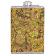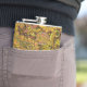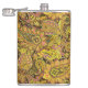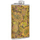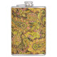 Paisley Motif in Yellow, Brown on Black Background Hip Flask