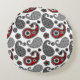 Ornate paisley pattern in black, white and shades of grey / grey, accented with deep red, on a white background