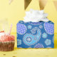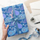 Ornate paisley pattern in shades of deep blue and turquoise, accented with white, on a cobalt blue background