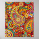 This colourful paisley pattern print is full of bright colours of orange teal yellow blue red. It will brighten up any room.