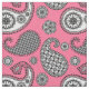 Paisley pattern, shades of grey on pink fabric