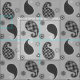 Ornate paisley pattern in classic black and white on a light silver grey / grey background