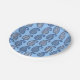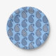 Ornate paisley pattern in dark navy blue and white on a soft sky blue background