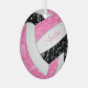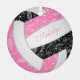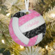 This cute volleyball themed ornament features the realistic image of a volleyball that has pink, black and white panels and a delicate doodle pattern of paislies, flowers and feathers in white overlying the pink and black panels - personalise with her name on the front, year on the back - by katz_d_zynes