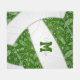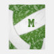 This unique volleyball themed fleece blanket for her features the realistic image of an abstractly oversized volleyball that has green and white panels - a continuous doodle pattern of paislies, flowers and feathers in white covers the volleyball's green panels - personalise with the athlete's name and monogram, varsity letter or jersey number - by katz_d_zynes