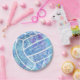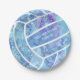 Paislies flowers feathers pattern blue volleyball paper plate