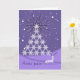 Paix, Peace in French, Christmas Tree and Deer Card. Christmas greeting card in shades of violet purple. Card features a Christmas tree made from snowflakes, a dark purple and silver starburst, and an off-white coloured graceful deer. Avec paix (With peace) text on the cover. Art, image, and verse copyright © Shoaff Ballanger Studios, 2024.