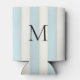 Pale Blue & Antique White Stripes Monogrammed Can Cooler