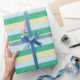 Pale Blue, Aqua Green and Beige Stripes Wrapping Paper