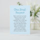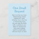 Baby shower enclosure card requests a children's book to create a library for baby in lieu of a traditional card. The design includes "one small request" title with custom text in a baby blue and grey colour scheme that can be fully personalised.