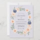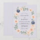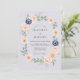 Delicate pale blue blossoms and soft peachy roses intertwine with verdant foliage in a circular arrangement. This design evokes a romantic and ethereal atmosphere, perfect for a serene celebration. The artistic watercolor style adds a touch of gentle charm.