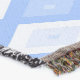 A quality printed throw has its advantages. This is a much finer weave throw than its loopier cousins, and though lighter, it is worth the investment for custom room accessorizing. The back is much prettier than the typical brown, and the fringe on the long sides very vivid, the selvage nicely done. Before photographing, I washed the throw in cold water, delicate, with a thicker woven throw the same size. On tumble dry low, this throw was dry in half the time as the other. This is a very practical quality if you use throws for furniture covers or to wrap up in frequently. The sleekness of the fabric makes it a great layer for accenting or protecting without the feeling of sitting on too much stuff. Perfect for napping or when you feel a light chill coming on. The color printing is beautiful and on this fabric, matched the design and color of my Photoshop image. This is an advantage for blending room fabrics and colors. The fringe on the short sides prints the colors from the design image and therefore varies from the side fringe. I streaked a white fractal line through the plaid pattern to give the illusion of weaving. This printed as crisp as an illusory thread, and put some white in the short side fringe, showing another advantage of print vs loomed- for artistic purposes, line lines, detail, and color integrity can be planned and preserved. My loomed throws have color limitations and more of a needlepoint texture. Print throws reproduce an exact image. The throw felt a little stiff straight out of the package, but this went away in the first delicate wash. Of course I searched the wash water for ink or bleeding and there was none.